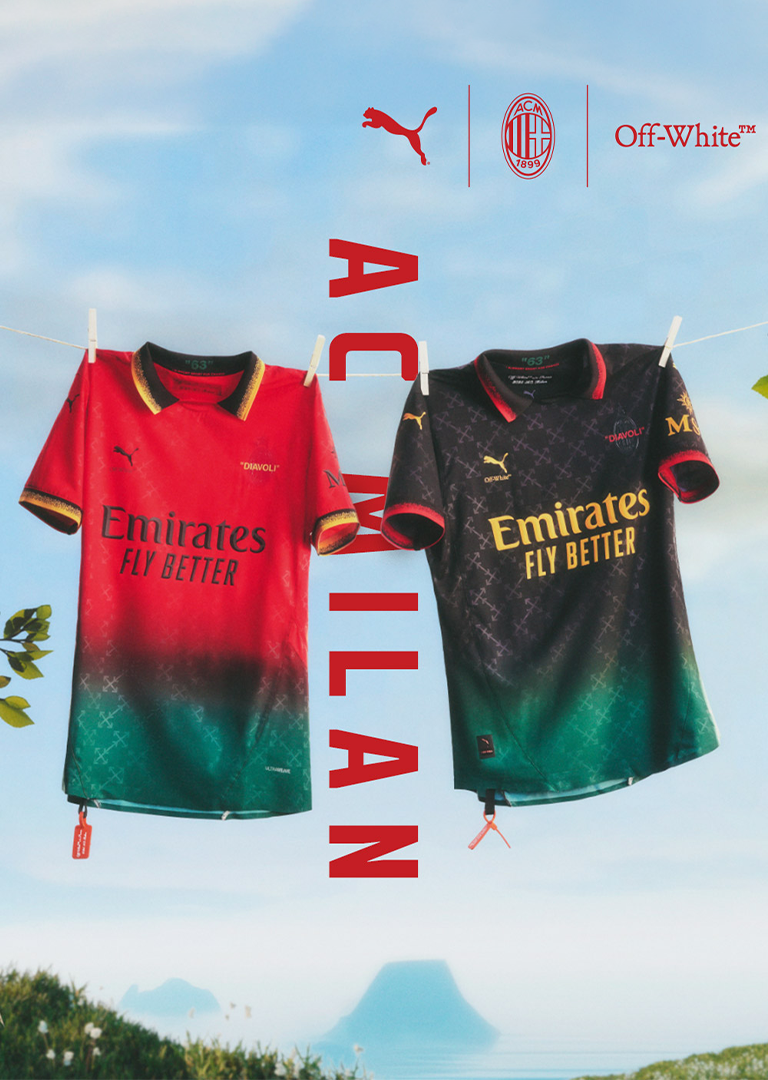 A match jersey displaying an '80s-inspired design, made with recycled materials.