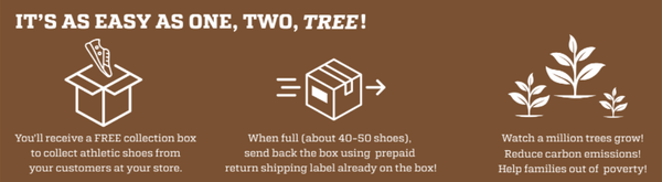 The MORE Foundation Group is a US non-profit organization that collects gently used athletic shoes for re-use and for funding reforestation projects in needy regions. MORE provides basic supplies, tools, seeds, grow bags, compost, saplings, and agroforestry training. Essentially, MORE implements self-sustaining tree farming.
